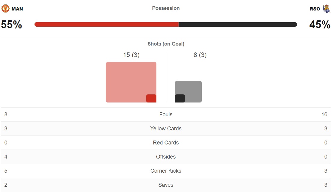 สุดท้ายจบเกมแมน ยูไนเต็ดเปิดบ้านแพ้ไปแบบน่าเจ็บใจ 1-0 จากจังจุดโทษที่มาร์ติเนซซวยแฮนด์บอลแล้วเมนเดซสังหารเข้าไปนาที 59 ทำให้ทีมปีศาจแดงออกสตาร์ทยูโรป้า ลีกซีซั่นนี้ด้วยความพ่ายแพ้คาบ้านและไม่มีแต้ม