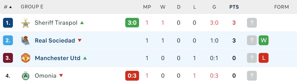 คริสติอาโน่ โรนัลโด้ ประเดิมลงสนามในศึกยูโรป้า ลีกเป็นครั้งแรกในอาชีพค้าแข้ง แต่ไม่สามารถช่วยให้ แมนเชสเตอร์ ยูไนเต็ด คว้าผลการแข่งได้เมื่อพวกเขาเปิดบ้านโดน เรอัล โซเซียดาด บุกสอยคาบ้าน 1-0 จากจังหวะที่ ลิซานโดร มาร์ติเนซ ซวยทำแฮนด์บอลในกรอบ แล้วเป็นบราอิส เมนเดซ สังหารให้ทีมเยือนนาที 59 ทำให้ทีมปีศาจแดงออกสตาร์ทในนัดแรกกลุ่ม E แบบไม่มีแต้ม
