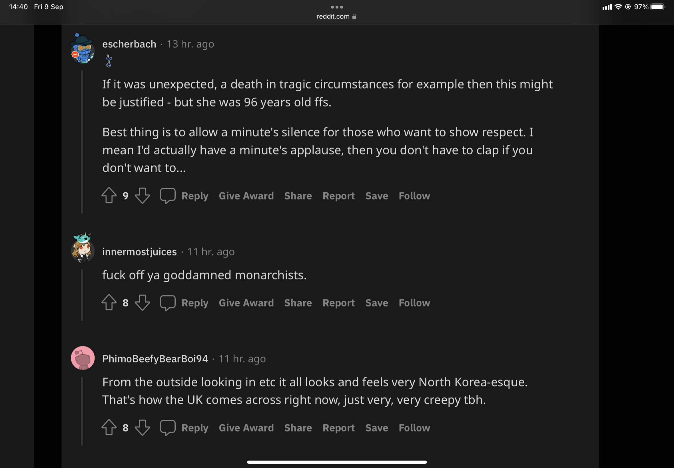 ส่วนพวก royalist ชั่วโมงนี้ก็คงไม่มีอารมณ์จะเข้ามาเถียงอะไรแบบนี้ในบอร์ดกีฬาหรอก