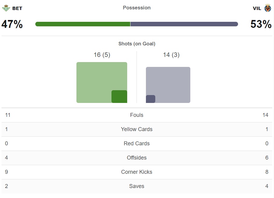 บีญาร์เรอัล สะดุดแพ้เป็นนัดแรกของฤดูกาลจนได้ เมื่อพวกเขาบุกไปโดน เรอัล เบติส เฉือนเอาชนะ 1-0 จากประตูโทนในครึ่งหลังนาที 61 ของ โรดริโก้ ซานเชซ ทำให้ทีมเรือดำน้ำสีเหลืองมี 10 คะแนนจาก 5 นัด หล่นไปอยู่อันดับที่ 4 ของตารางลาลีก้า ตามหลังจ่าฝูงอย่างเรอัล มาดริด 5 แต้ม พร้อมกับเบติสแซงขึ้นไปรั้งที่ 3 แทน