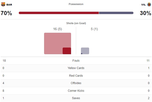 สุดท้ายจบครึ่งแรกเป็นบาร์ซ่าที่ทำได้เหนือกว่าชัดเจนและขึ้นนำไปก่อนถึง 3-0