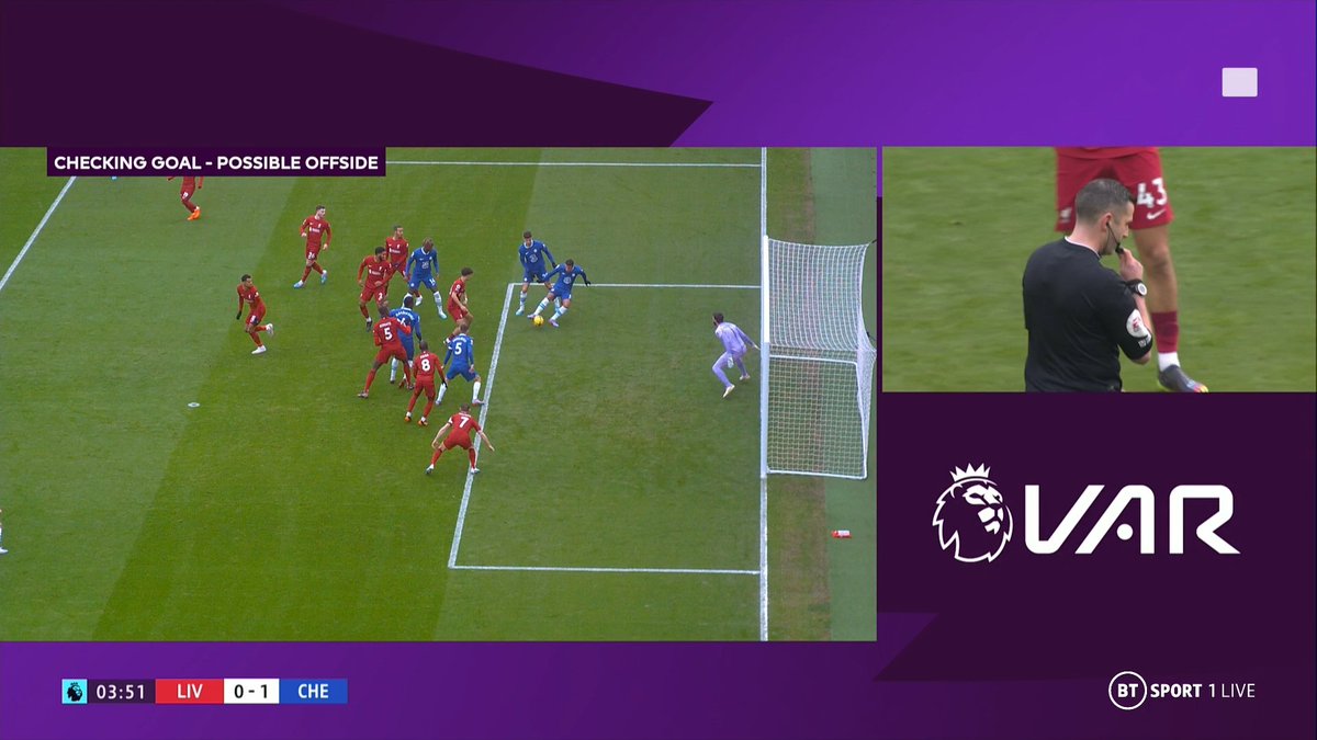 โอกาสหนแรกของเชลซี มาได้ประตูขึ้นนำเลย เป็นคอนเนอร์ทางซ้ายที่เปิดมาบาเดียชิลสะกิดมาให้ ติอาโก้ ยิงจังหวะแรกชนเสากระดอนมาเข้าทางฮาแวร์ตซ์ตามซ้ำเข้าไป แต่ VAR ขอเช็คปรากฏว่าเท้าของไค ล้ำหน้าบอลไปก่อนที่ติอาโก้ยิงเป็นออฟไซด์