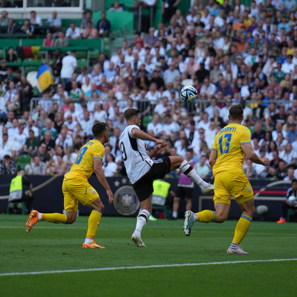 เกมกระชับมิตรของเยอรมนี ทำเอาแฟนๆ เกือบเสียหน้าคาบ้านหลังขึ้นนำก่อนจาก นิคลาส ฟูลล์ครูก แต่แนวรับมาพลาดจนเสีย 3 ประตูรวด แล้วเป็น ไค ฮาแวร์ตซ์ สวมบทฮีโร่ ยิงไล่ตามก่อนมาเรียกจุดโทษท้ายเกมให้โจชัว คิมมิช ยิงตีเสมอยูเครนหวุดหวิด 3-3