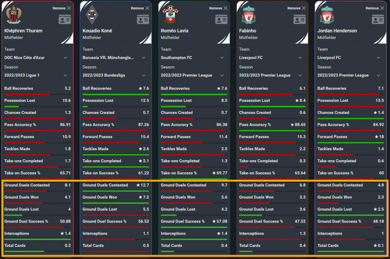 -ส่วน ฟาบิญโย่+เฮนเดอสัน ทำได้แค่ 47-48 % พูดง่ายๆแย่งบอลแพ้มากกว่าชนะ