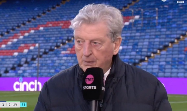 รอย ฮ็อดจ์สัน กุนซือขรัวเฒ่าของคริสตัล พาเลซ ไม่พอใจ เวอร์กิล ฟาน ไดจ์ค กองหลังลิเวอร์พูล พยายามทำให้ จอร์แดน อายิว โดนใบเหลืองแรก ก่อนมาโดนไล่ออกในเวลาต่อมา