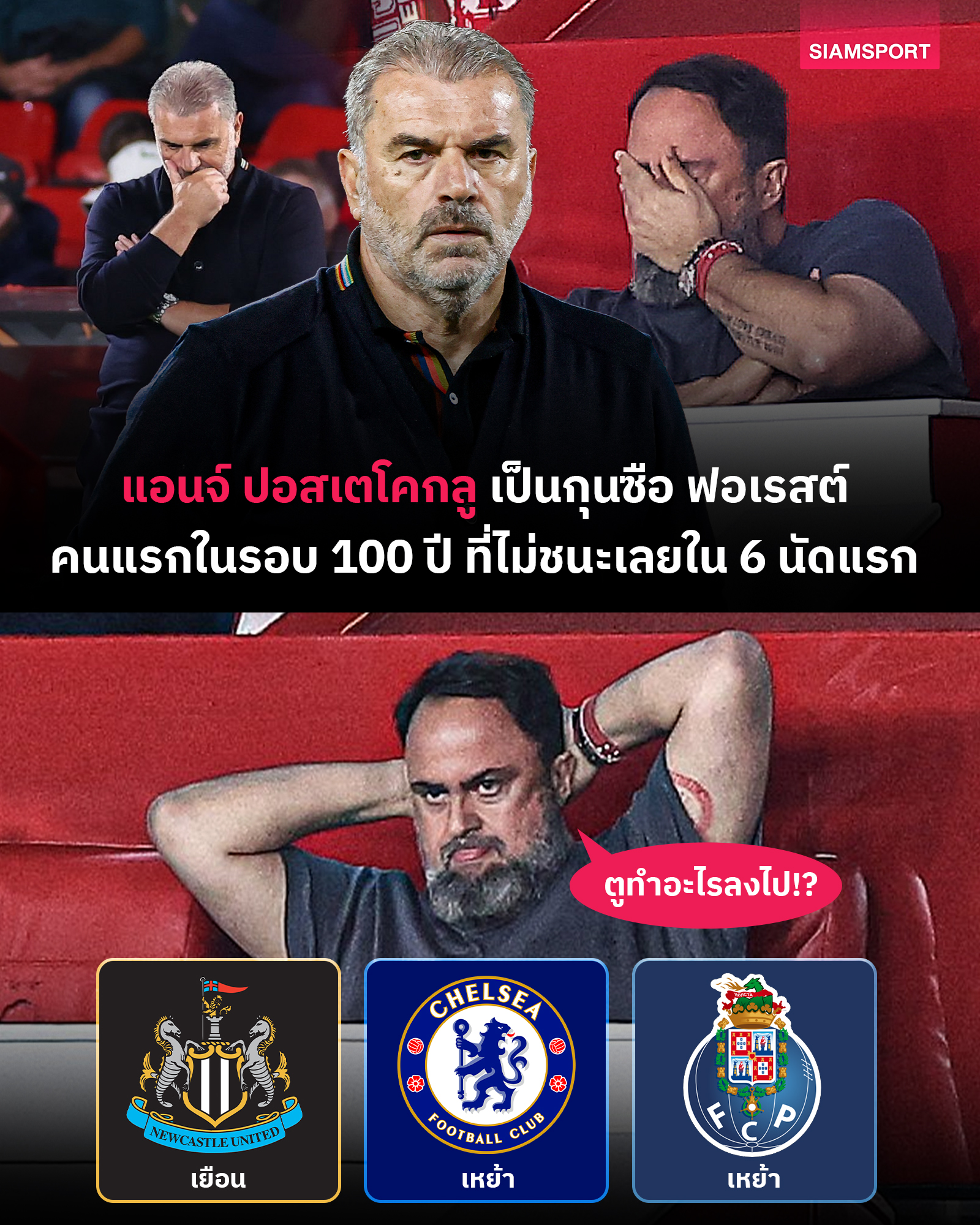 อังเก้ ปอสเตโคกลู กลายเป็นกุนซือ น็อตติ้งแฮม ฟอเรสต์ คนแรกในรอบ 100 ปี ⚠️ ที่ไม่สามารถพาทีมชนะได้เลยตลอด 6 นัดแรกในการคุมทีม (เสมอ 2 แพ้ 4)