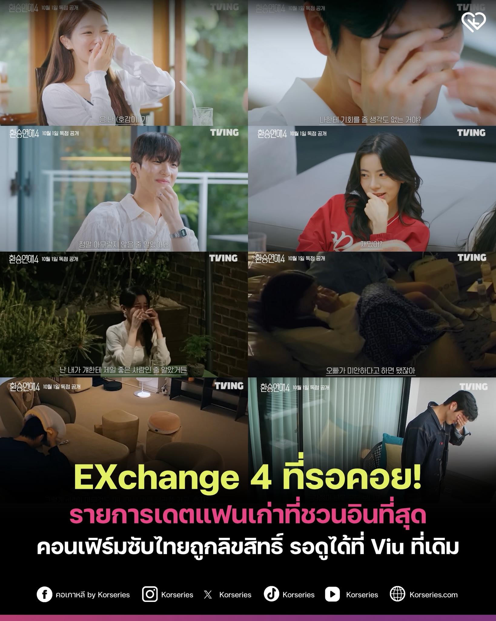 “Exchange” หรือ Transit Love เป็นเรียลลิตี้จับคู่ที่พาหนุ่มสาวอดีตคู่รักที่เลิกรากันไปแล้ว 4 คู่ 8 คน มาอยู่ร่วมกันในบ้านหลังเดียวกัน โดยมีกฎว่าห้ามเปิดเผยให้คนอื่นรู้ว่าใครเคยคบกับใครมาก่อน พวกเขาจะต้องเลือกว่าจะสานสัมพันธ์กับคนเก่าหรือคนใหม่