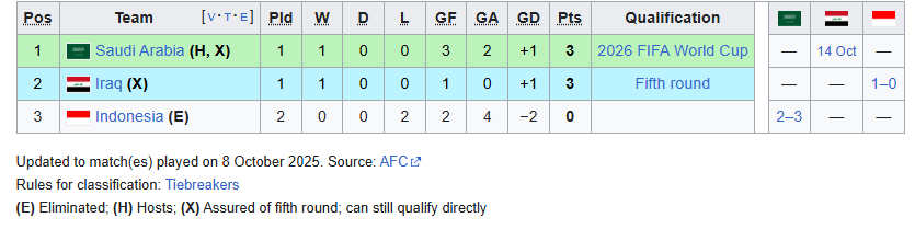 ชัยชนะทำให้ อิรัก มีโอกาสเข้ารอบอัตโนมัติ หากปราบ ซาอุดิอาระเบีย ได้ในเกมวันอังคารนี้ และถึงจะพ่ายแพ้ก็ยังได้เล่นเพลย์ออฟกับคู่แข่งอีกสาย