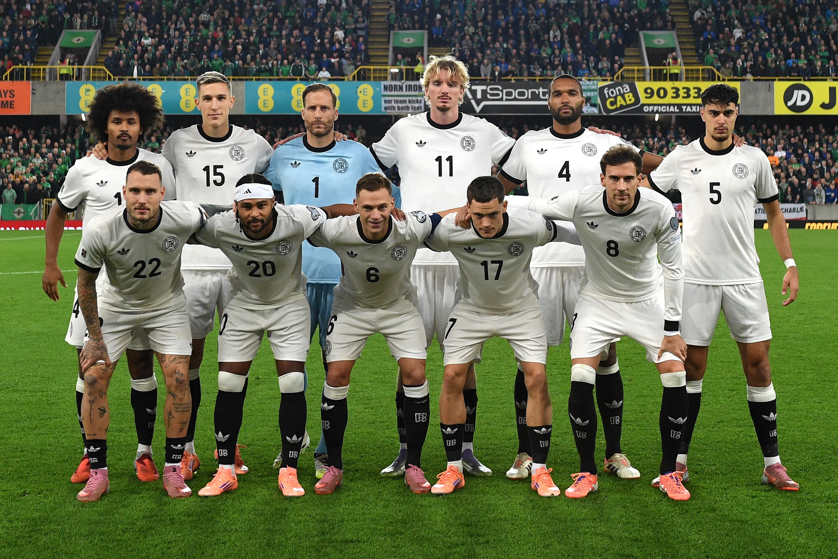 นัดนี้ ยูเลี่ยน นาเกิลส์มันน์ ยึด 11 ตัวจริงชุดเดิมจากที่เอาชนะลักเซมเบิร์ก 4-0 โดย ฟลอเรียน เวียร์ตซ์ จะลงบัญชาการเกมอยู่ข้างหลัง นิค โวลเทอมาเดอ ขนาบข้างด้วย แซร์ก นาบรี้ และ คาริม อเดเยมี่