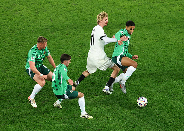 เยอรมนียังคุมสถานการณ์ได้ดี ใช้วิธีเพรสแดนกางบีบให้ ไอร์แลนด์เหนือทำได้แค่ถ่ายบอลไปมา