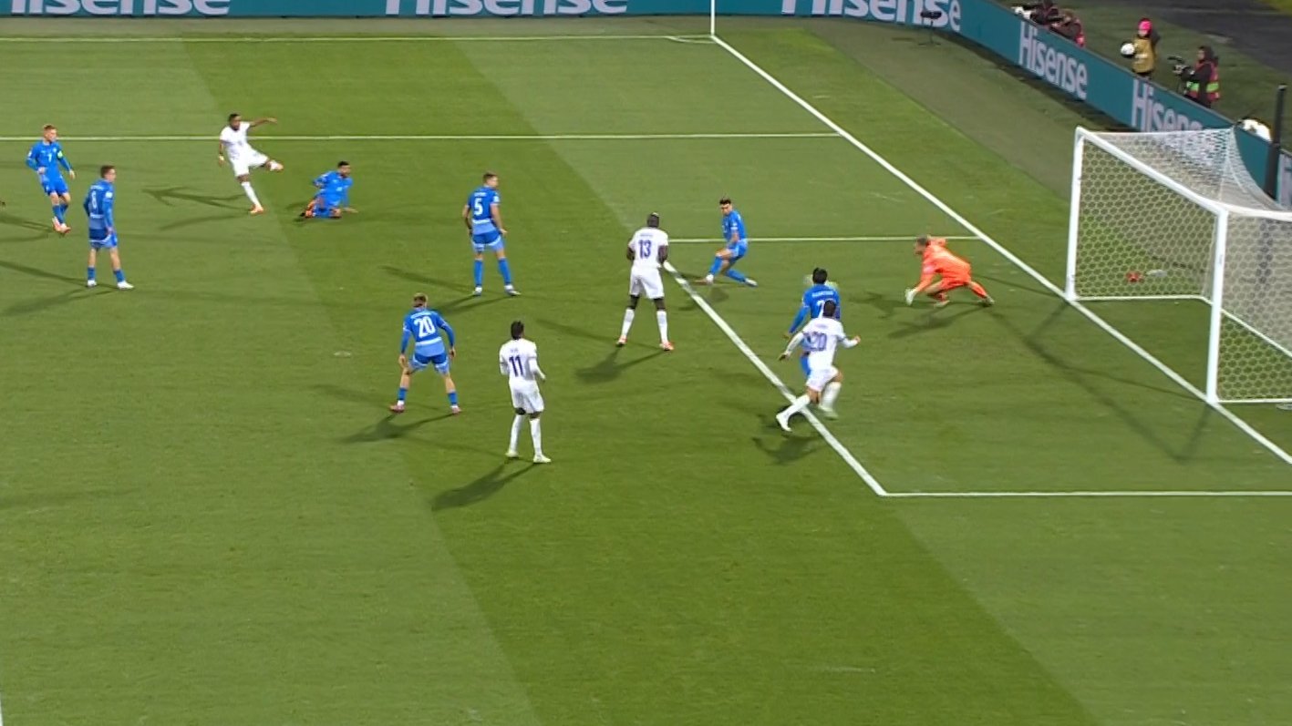 ความพยายามของ ฝรั่งเศส ประสบความสำเร็จ คามาวิงก้า แทงทะลให้ อากลิอูช ตัวสำรองปาดเข้าใน มาเตต้า สไลด์ยิงระยะเผาขนเข้าไปไม่เหลือซาก เป็นประตูแรกของเจ้าตัวกับทีมชาติด้วย