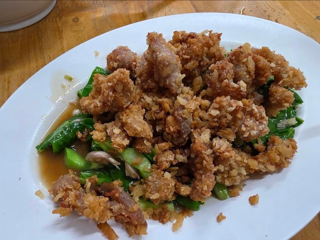 อร่อยมาก ชอบ หมูชุบเกล็ดขนมปังคะน้าน้ำมันหอยครับ