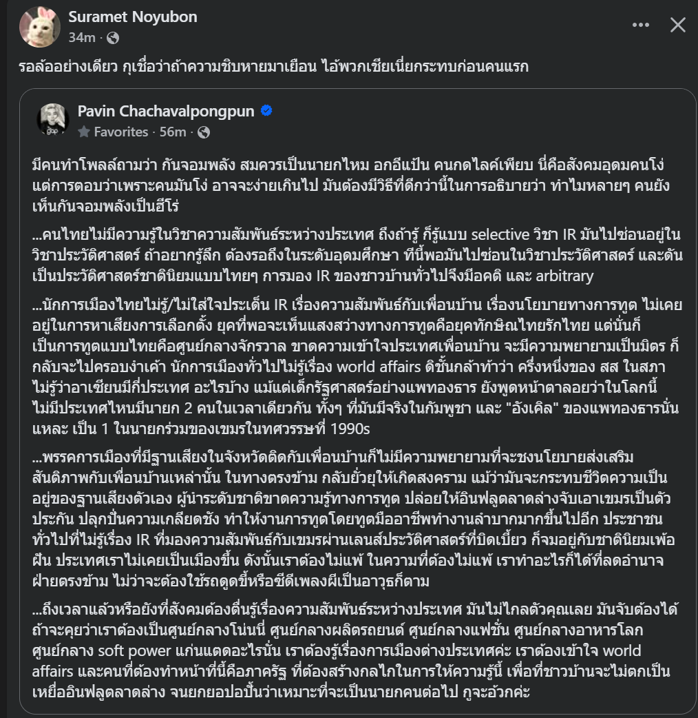 แต่มันก็แสดงให้เห็นว่าเขมร มันยังเอาด้านการฑูตมาใช้เป็นทางเลือกเลย แล้วของไทยคือยังไง ลอยตัวสบายใจไปวันๆ?
