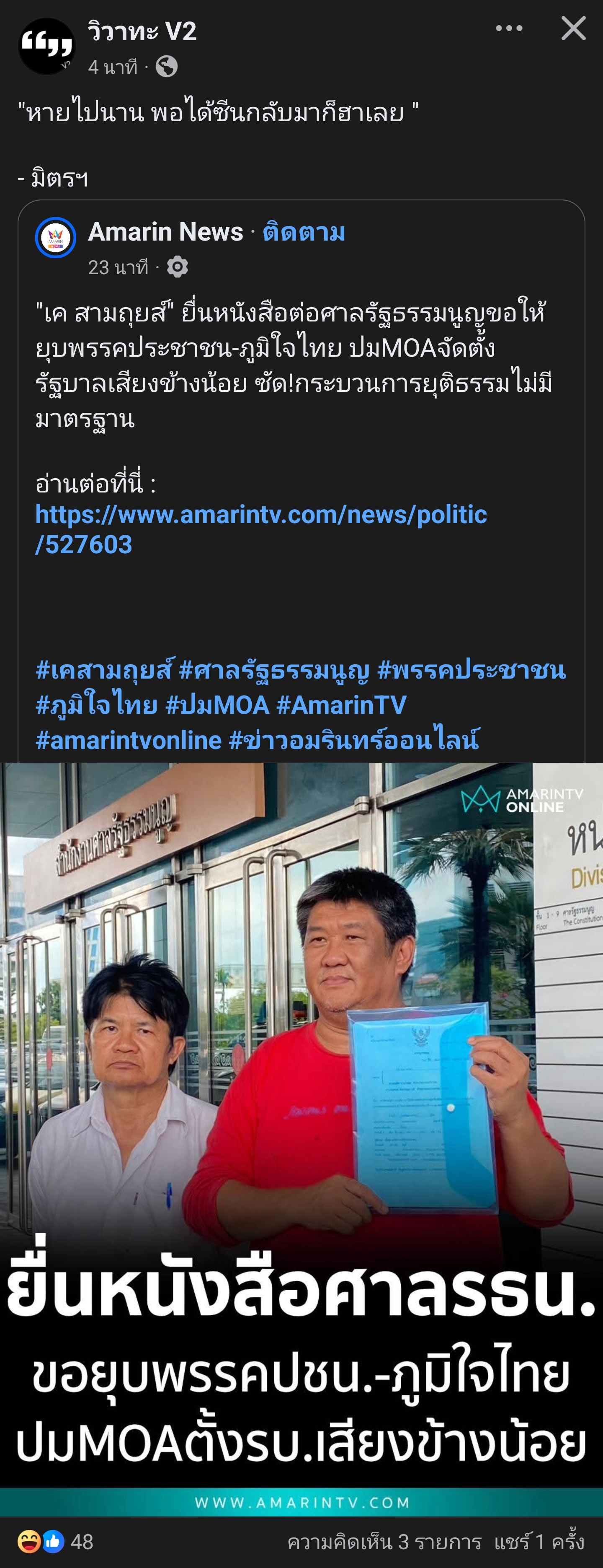 [RE: เค สามถุยส์ ยื่นหนังสือศาลรัฐธรรมนูญ ขอยุบพรรคปชน.-ภูมิใจไทย ปม MOA]
