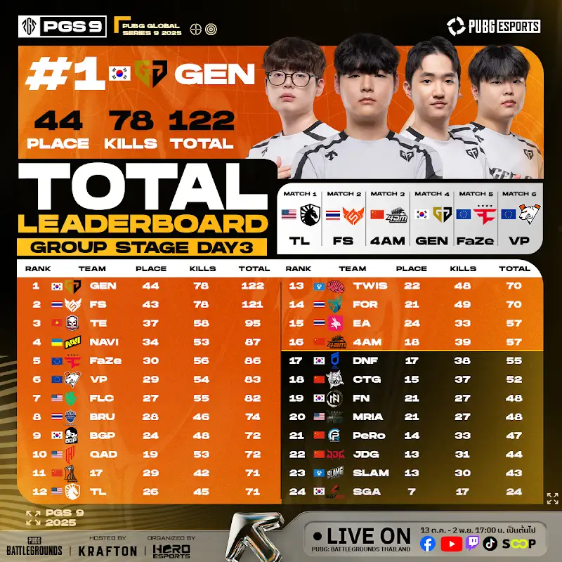 [RE: PUBG Global Series 9 Group Stage วันที่ 3]