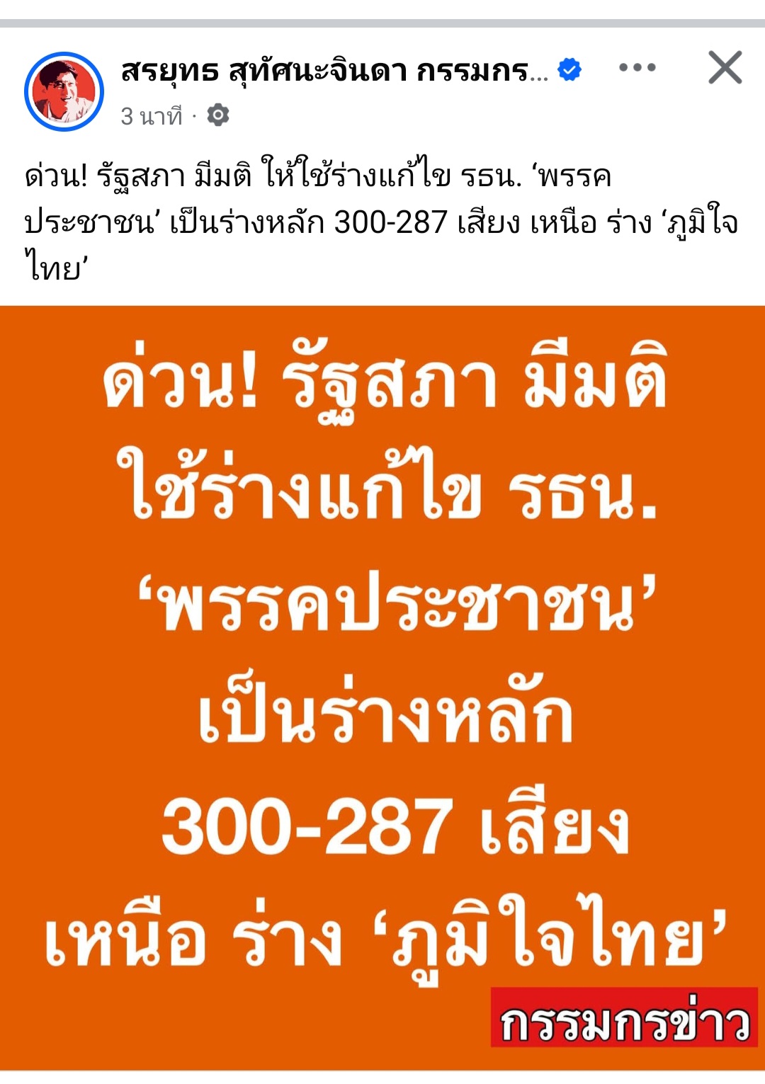 [RE: BREAKING!!! สส. และ สว. มีมติใช้ร่างแก้รัฐธรรมนูญของพรรคประชาชนเป็นร่างหลัก เหนือร่างพรรคภูมิใจไทย 13 เสียง]