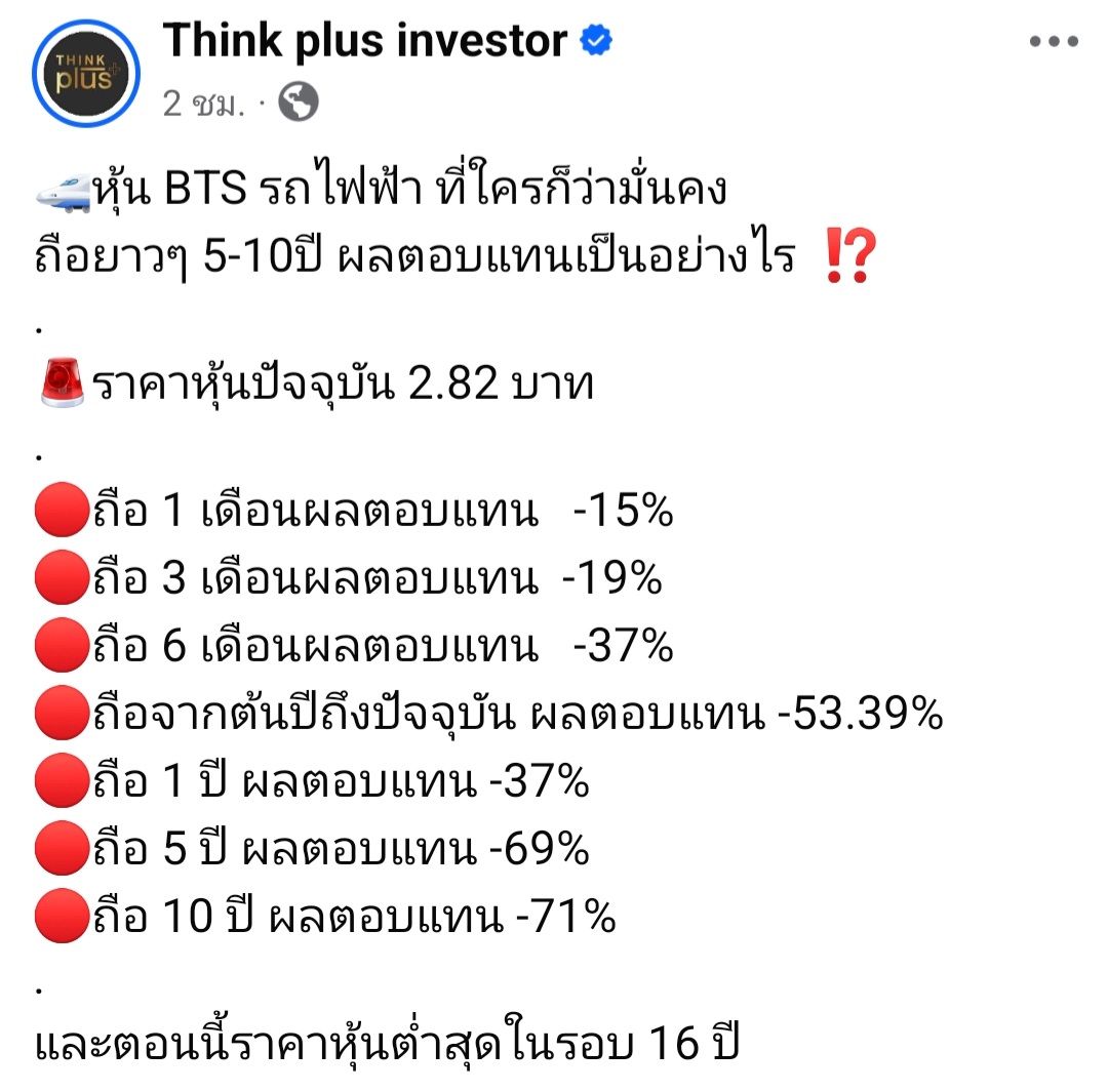 [RE: หุ้น BTS ผลตอบแทน10ปี ติดลบ 71%]