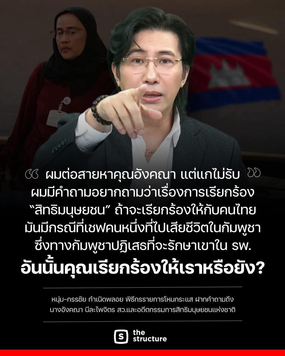 ละที่ทุเรศที่สุดนะคือกรรชัย คุณไม่ควรเอาตัวเองไปอยู่ในความขัดแย้งเพราะคุณใส่หมวกสื่ออยู่ คุณก็รู้ดีว่าการที่ชาวบ้านต้องสู้กับอำนาจมืดนั่นแหละคือสิ่งที่ทำให้เกิดกลุ่มที่เรียกร้องสิทธิมนุษยชนให้เหยื่อ แสดงว่าที่ผ่านมาคุณไม่ได้ซึมซับอะไรเลย