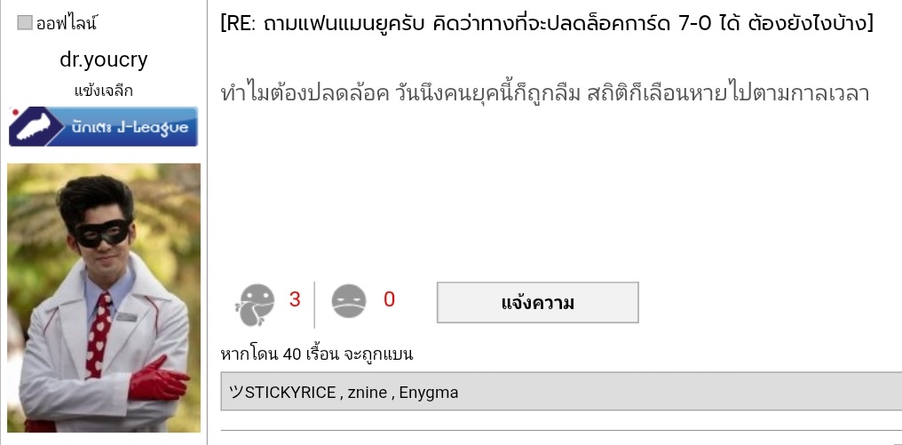 จริงนะ ถ้าใครบอกผมยอมไม่ได้แชมป์ลีกซักปีแลกกับระเบิดถังขี้แมนยูจนพวกต้องไปขุดหลุมอยู่ตลอดไปเอามั้ย ผมเอานะ ทุกวันนี้สงบเสงี่ยมจัด โดน 7-0 ไปแทบจะไม่เหมือนเดิมไปตลอดกาลทั้งในนี้และชีวิตจริง โคตรสะใจ 55