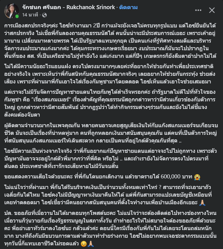 ผมทิ้งบัญชีบริจาคไว้ให้แล้วครับ ถ้าโอนครบ 600,000 บาท ผมจะไปถึงที่ทันทีครับ