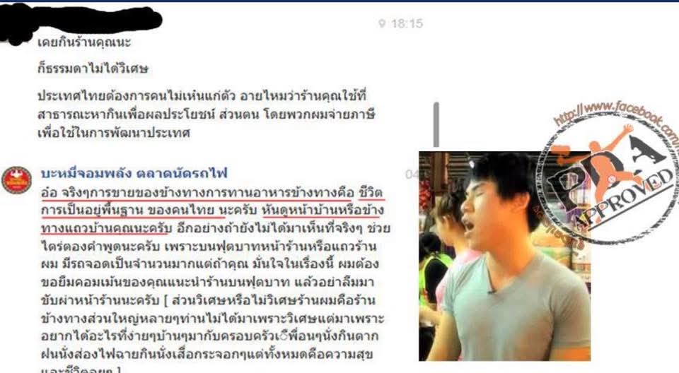 แต่เรื่องขายของในที่สาธารณะ ผมมองว่าไม่เหมาะสมเท่าไหร่ บ้านเรายังมีปัญหาเรื่องนี้เยอะ คือคนไทยชอบมักง่าย ทำให้คนอื่นเดือดร้อนกันไปหมด อยากให้ช่วยกันแก้ไขจริงๆ