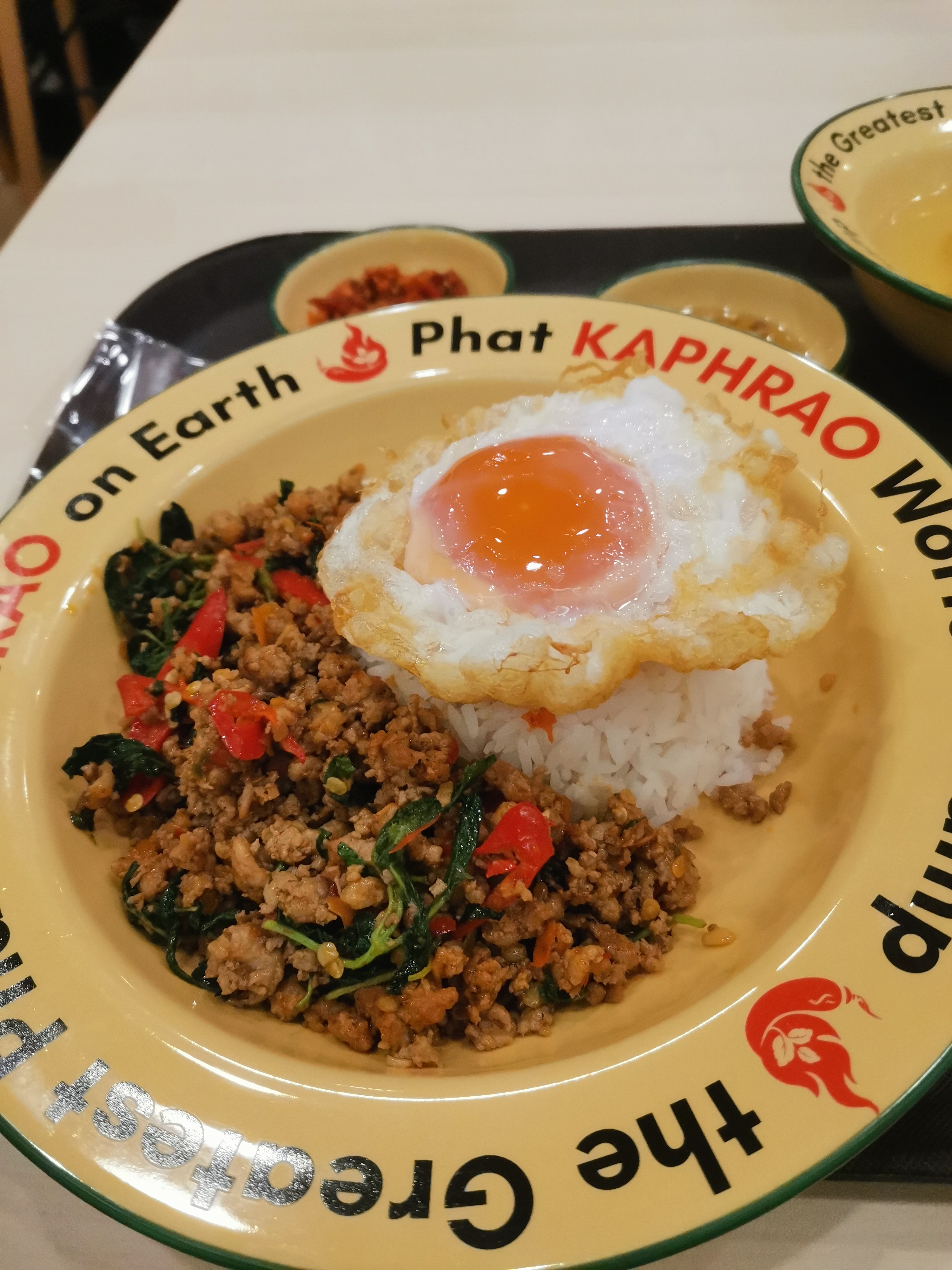 อย่างแรกเลย ใช้ข้าวดี (หอมมะลิ) ส่วนรสชาติ จะไม่เหมือนร้าน Phed Mark แต่อารมณ์จะไปทางกะเพราตาแป๊ะ ที่มิติของรสชาติน้อยกว่าหน่อยนึง แต่ผัดมาแห้งๆเหมือนกัน