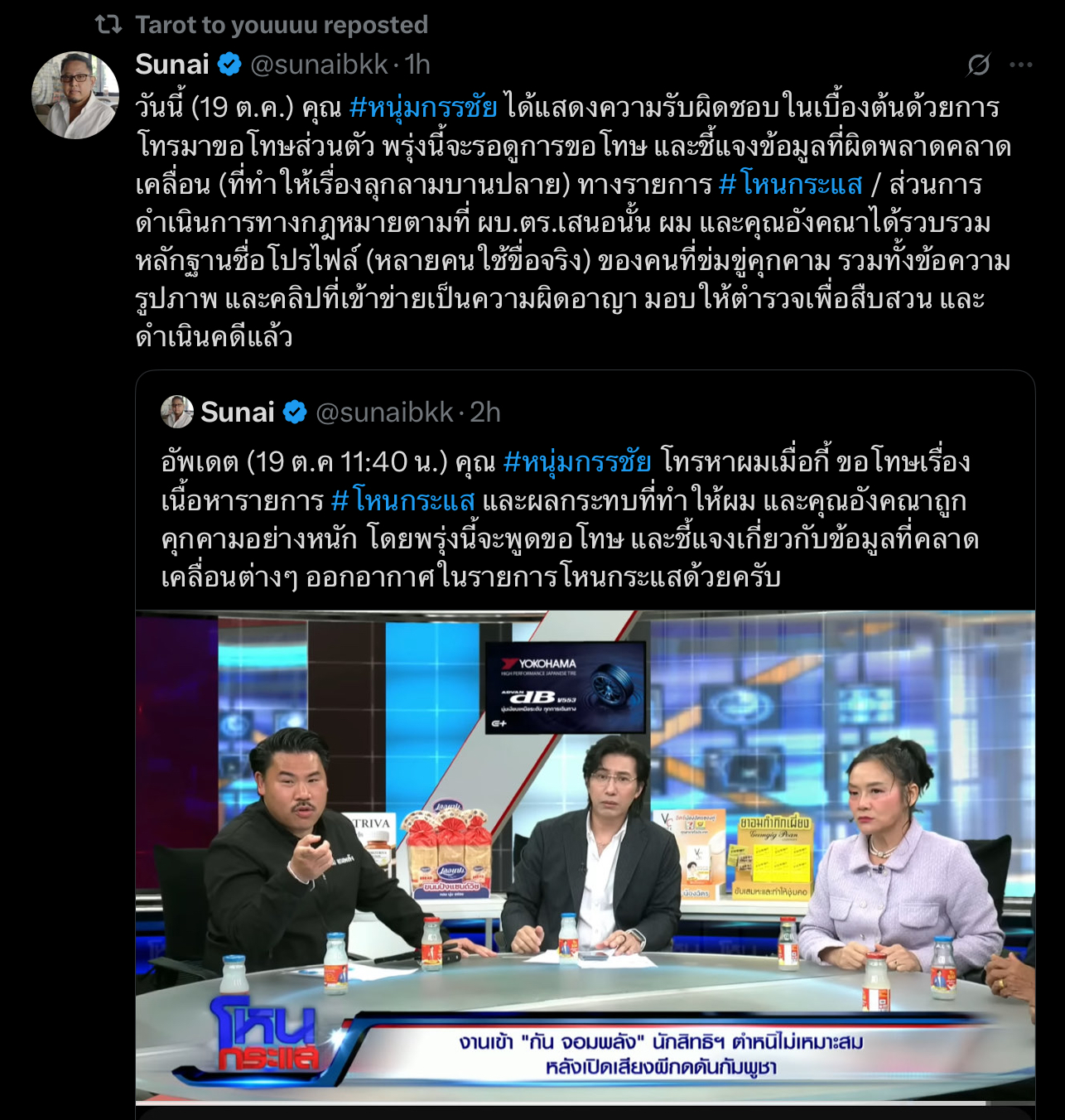 [RE: พรี่หน่วง เตรียมขอโทษอย่างเป็นทางการในโหนกระแสพรุ่งนี้]