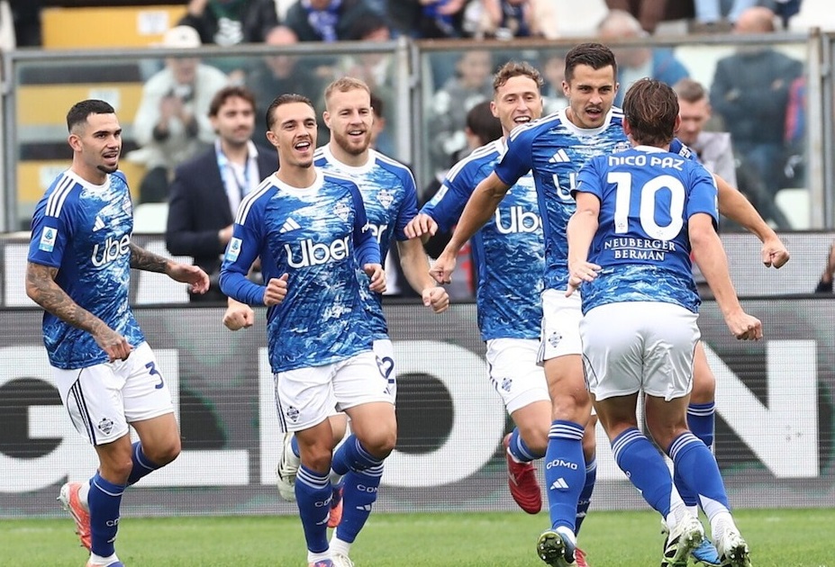 แต่แล้วพอเข้าท้ายเกม โคโม่ ก็ฝังประตูทิ้งห่างจนได้ เป็นการโต้กลับที่ แปร์โรเน่ ทิ้งบอลขึ้นหน้าให้ ปาซ ทางขวาพาบอลต่อถึงเขตโทษก่อนล็อกหลบ คัมเบียโซ่ ที่เข้ามาสกัดแล้วยิงด้วยซ้ายตุงตาข่ายกลายเป็น 2-0