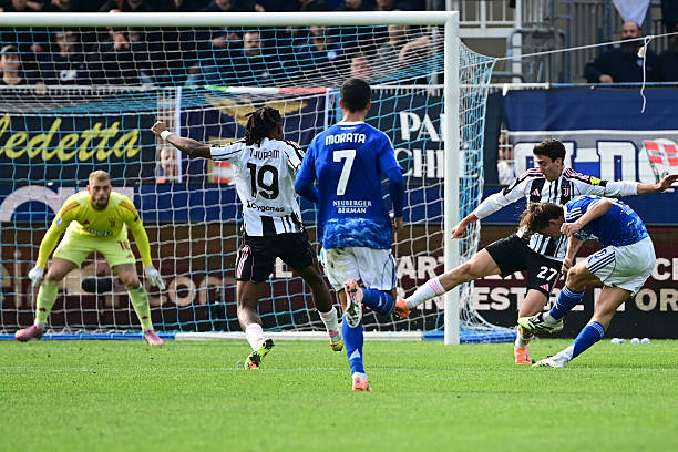 ยูเวนตุส ยังทำอะไรมากไม่ได้หลังมีโอกาสจบที่ ยิลดิซ ทางซ้ายของเขตโทษโดนตัวตามประกบยังจ่ายเข้าในให้ โลคาเตลลี่ ได้ยิงแต่ก็ส่งบอลโด่งออกหลัง