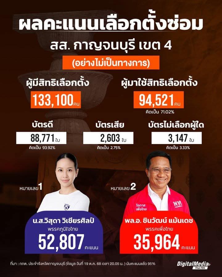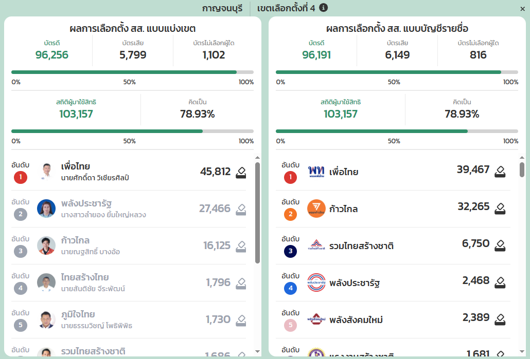 [RE]เปรียบเทียบคะแนนเลือกตั้งปี 66 กาญจนบุรี เขต 4 กับการเลือกตั้งซ่อม