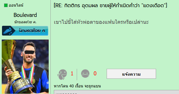ผมดูเกมเมื่อคืน แกไมค์ 2 ก็โอเคเลยนะ ผมชอบนะตอนแกอยู่ไมค์ 2 กับใน main stand แต่ก็นั่นแหละ อย่าให้ได้ใส่ไมค์ 1 ยิ่งพากย์คนเดียวนี่คนดูหลับ