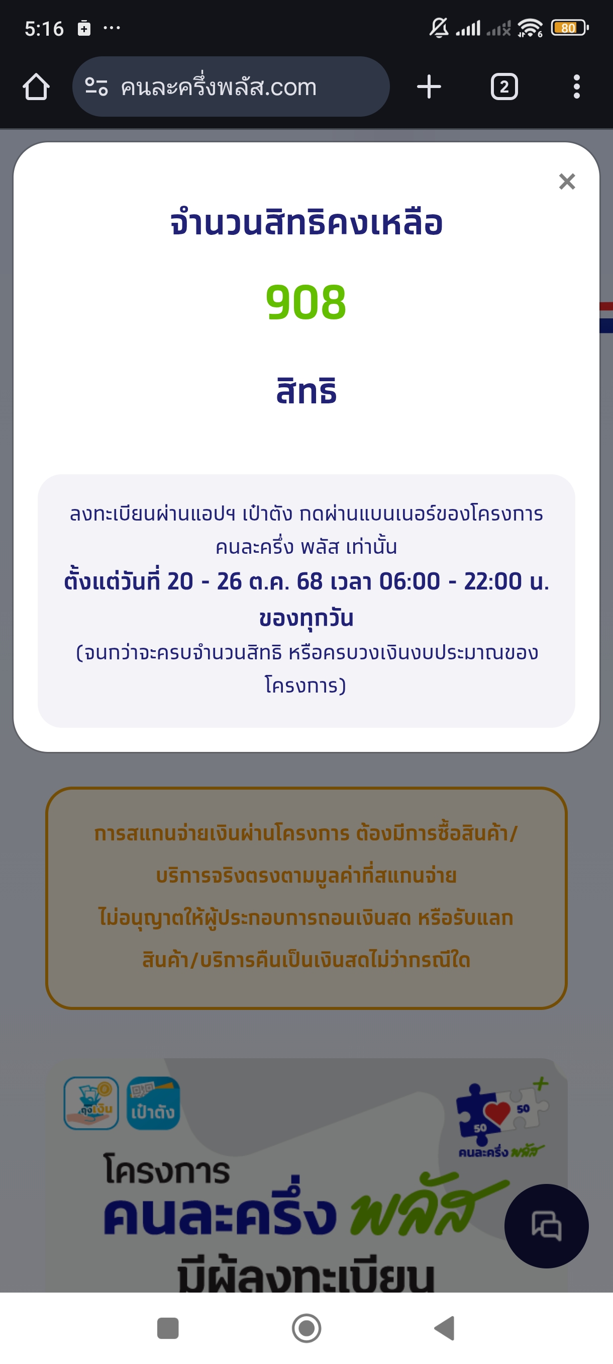 [RE: ใครยังไม่ได้ลง คนละครึ่งลองดูครับ เพื่อได้]