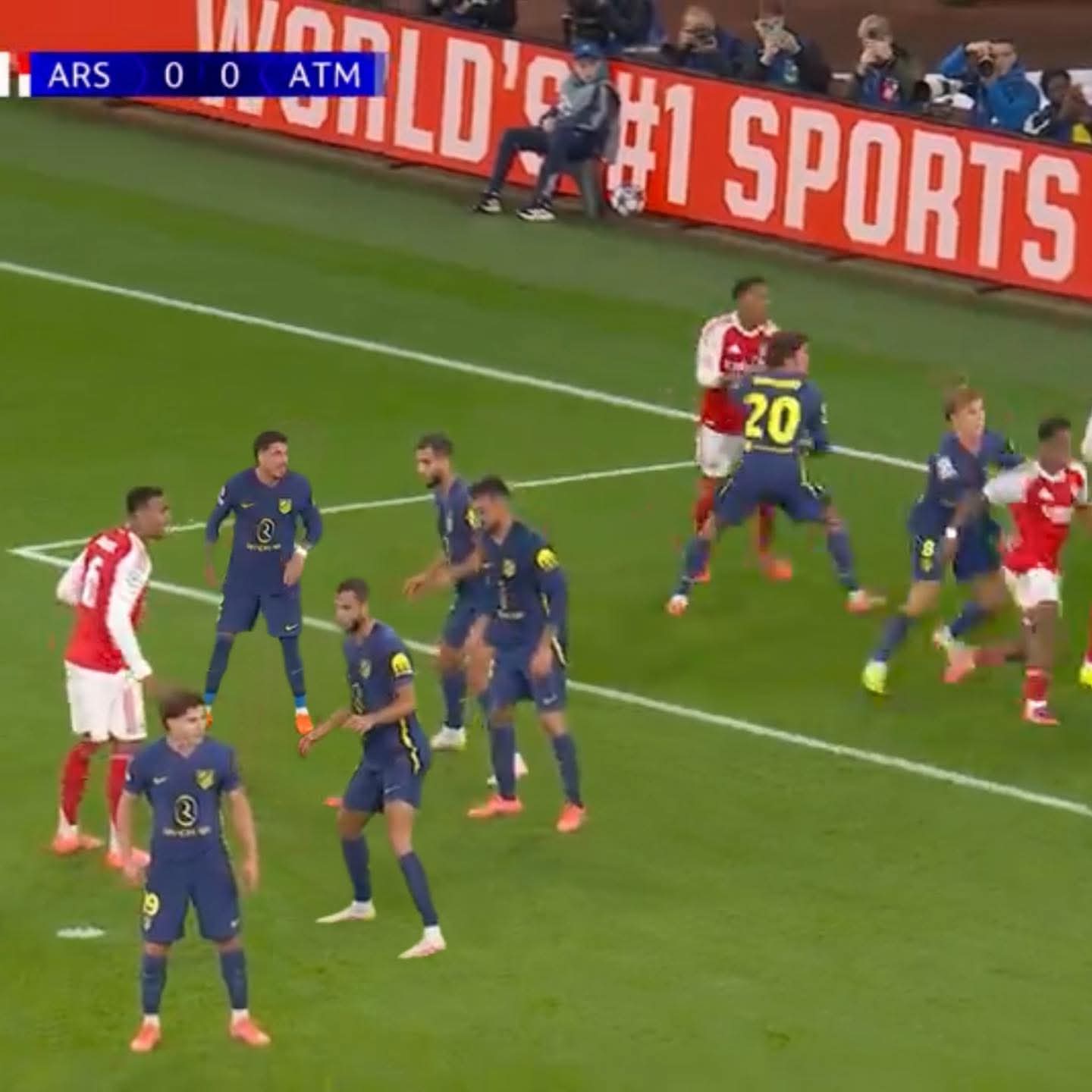 โค้ชทุกทีมที่เจอน่อลตอนนี้เวลาเสียเตะมุมต้องจัดการคนนี้ออกจากจังหวะการเล่นแหละ เพราะพี่แกเหมือนโจเวอร์มาเล่นเองเข้าใจเพลย์ลูกตั้งเตะทั้งหมดอยู่คนเดียว ไอ้ลูกที่โหม่งกลับมาเสาไกลเหมือนจะมั่วแต่คิดว่าเป็นแผนที่เซ็ทคือ มาร์ตี้-กาเบรียล ยืนหัวโด่ให้เห็นกลางเขตโทษเลย ฝั่งนู้นก็เอาตัวมาประกบตามปกติ แต่พอตรีนไรซ์โดนบอลที่เกิดขึ้นคือมาร์ตี้ไม่วิ่งไปไหนถอยหลังไปสกรีนตัววิ่งตามกาเบรียล แล้วไอ้ตัวที่ประกบมาร์ตี้ก็ไปไหนไม่ได้เพราะมันยังอยู่ที่เดิม ผลคือกาเบรียลตัวเปล่าวิ่งมาเลือกเลยจะโหม่งเข้าหรือโหม่งตั้ง