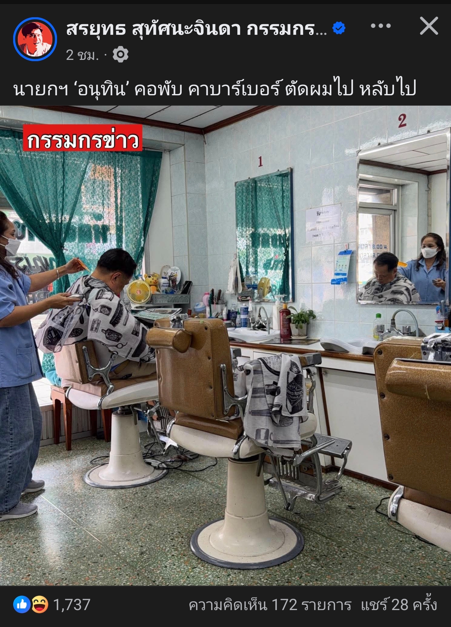 ร้านแถวบ้านผมโคตรร้อน เพราะร้านตัดผมร้านประจำ ไม่ทมีแอร์ ลมจากธรรมชาติล้วนๆ ไม่มีเพลงให้ฟังด้วย เน้นคุยเรื่องการเมือง
