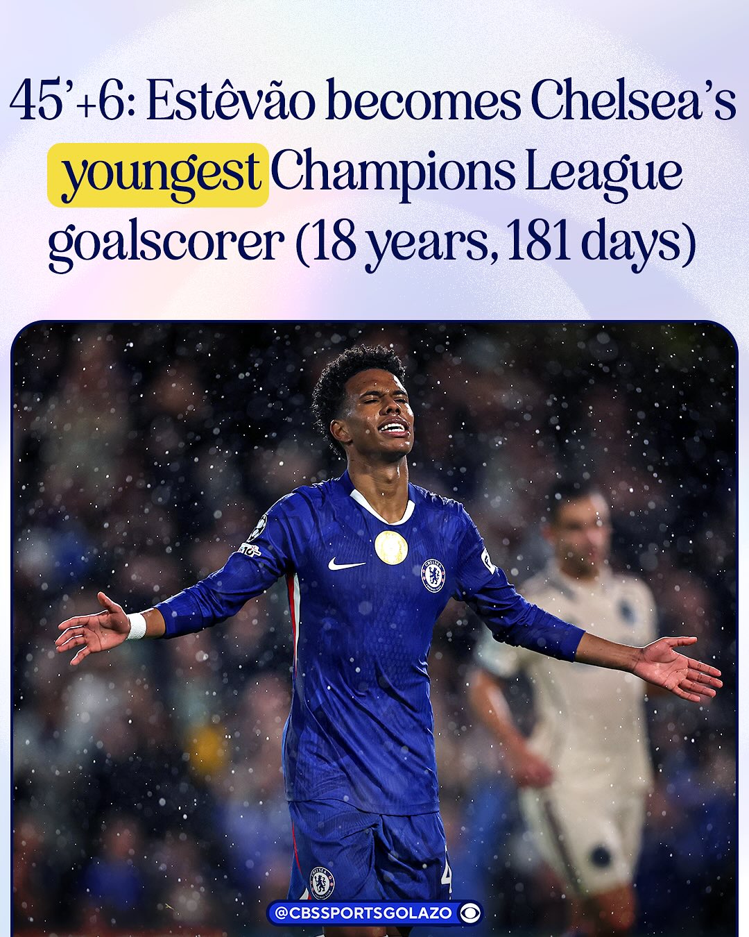 - เอสเตเวา เป็นนักเตะอายุน้อยสุดเชลซี ที่ยิงได้ในชปล.