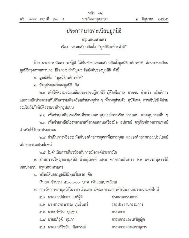 [RE: เปิดข้อบังคับมูลนิธิ บุ๋ม ปนัดดา]