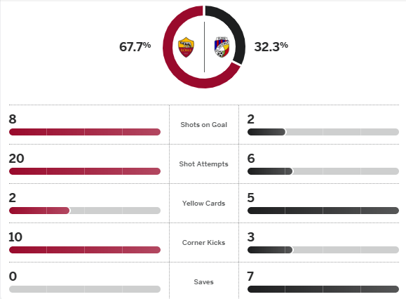 วิคตอเรีย เปลเซ่น ผู้มาเยือนจากลีกเช็ก รัวยิง 2 ประตูขึ้นนำในนาทีที่ 20 และ 22 แม้ต้นครึ่งหลัง โรม่า ได้จุดโทษให้ เปาโล ดีบาล่า สังหารตีไข่แตกแต่ไม่เพียงพอ แพ้คาบ้าน 2-1 ปราชัยใน ยูโรป้า ลีก สองนัดติด มี 3 แต้มตามเดิมจมโซนกลางตาราง