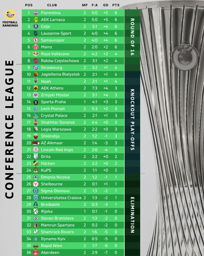 อย่างไรก็ตาม วันพฤหัสที่ผ่านมา ทีมดังเมืองฟลอเรนซ์ ยังรักษาฟอร์มในบอลยุโรป เก็บ 6 แต้มเต็มจาก 2 เกม ยิงรวม 5 ประตูเสีย 0 นำหัวตารางร่วมกับ เออีเค ลาร์นาคา