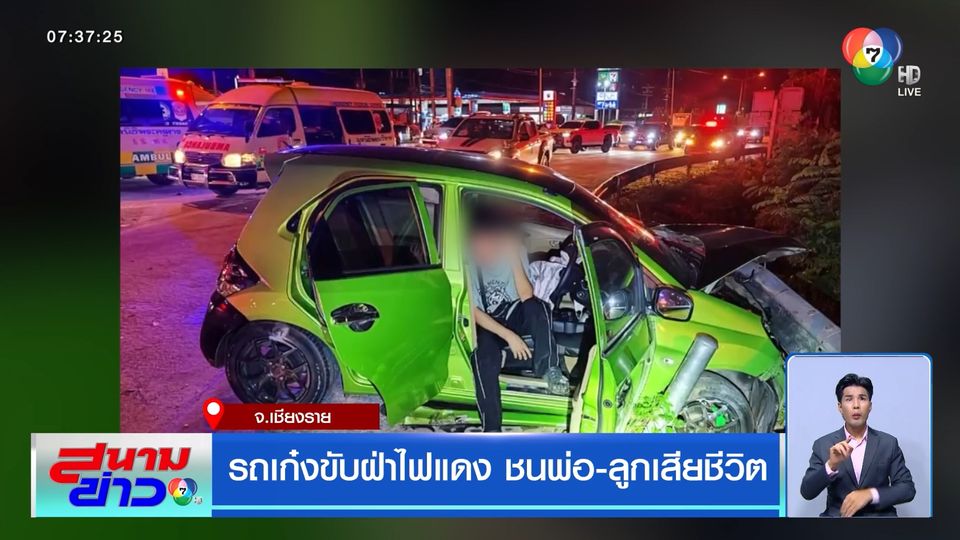 หนุ่มซิ่งเก๋งฝ่าไฟแดง ชนจยย.พ่อวัย 45 กับ ลูกชายวัย 13 เสียชีวิตคู่