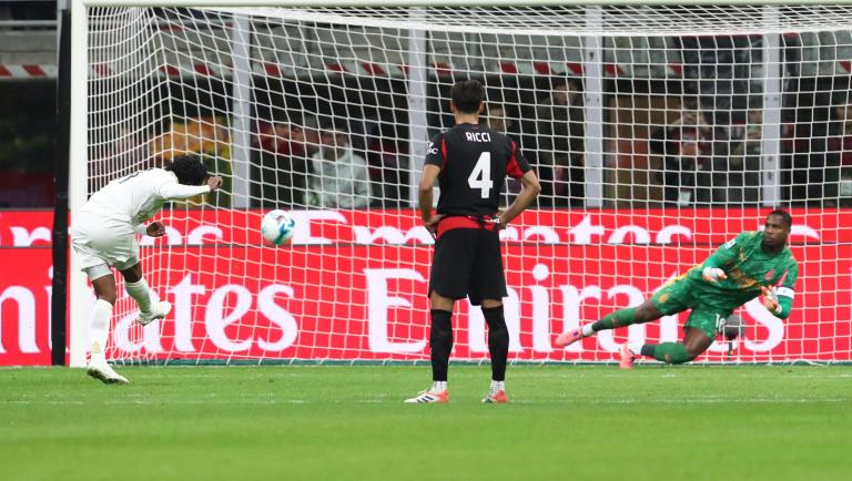 มิลาน ไม่ยอมแพ้ไล่ตีเสมอได้สำเร็จ บอลเตะมุมแล้วเล่นสั้น โมดริช จ่ายให้ อาเธคาเม่ จากแถวสองแล้วเลือกยิงยัดทันที บอลไม่โดนใครเลยเสียบเสาเข้าไป