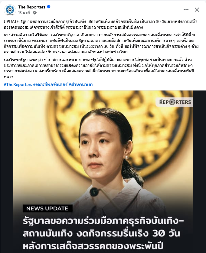 [RE: โดนด่าก็ลด!!!! งดกิจกรรมงานรื่นเริงจาก 90 วัน เหลือ 30 วัน เนื่องจากพระพันปีหลวงสวรรคต]