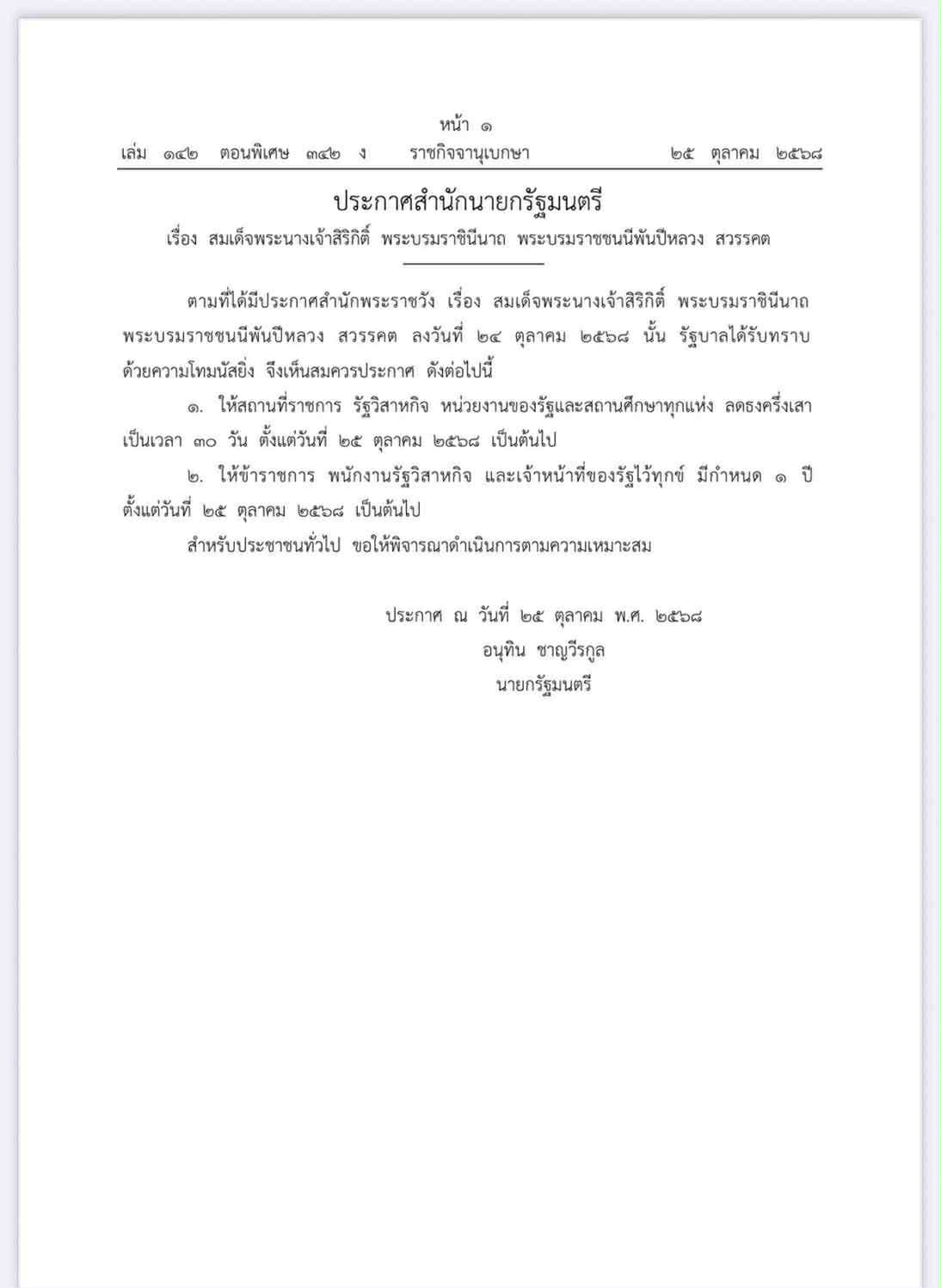 หน่วยงาน ลดธงครึ่งเสา 30 วัน
