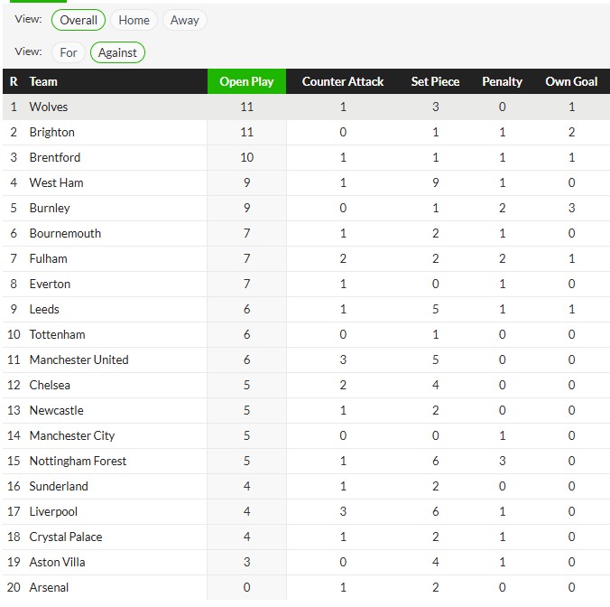 หากดูจากรูปลิเวอร์พูลเสียประตูไปแล้ว 6 เป็นรองแค่เวสแฮมที่เสีย 9 จากลูกนิ่ง และลิเวอร์พูลเสียประตูจากการถูกสวนกลับ3ประตู แย่สุดในลีก เท่าแมนยู