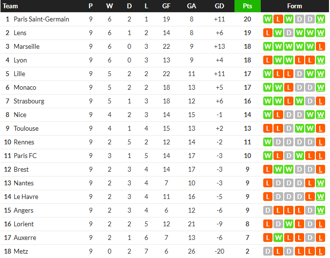 สรุปผล ลีกเอิง อาทิตย์ที่ 26 ตุลาคม 2025
