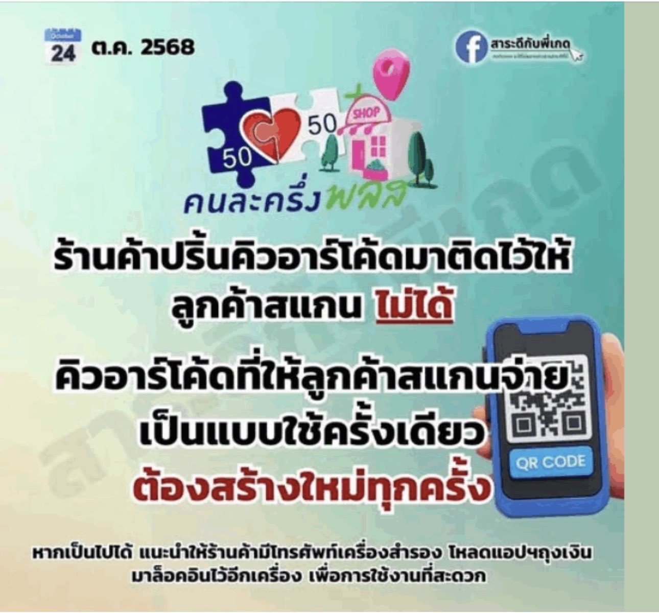 [RE: เอาล่ะสิ คนละครึ่งพลัส ร้านค้าต้องเปลี่ยนคิวอาร์โค้ดใหม่ทุกครั้ง]