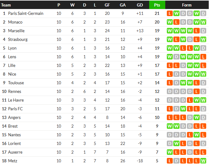 สรุปผล ลีกเอิง พุธที่ 29 ตุลาคม 2025
