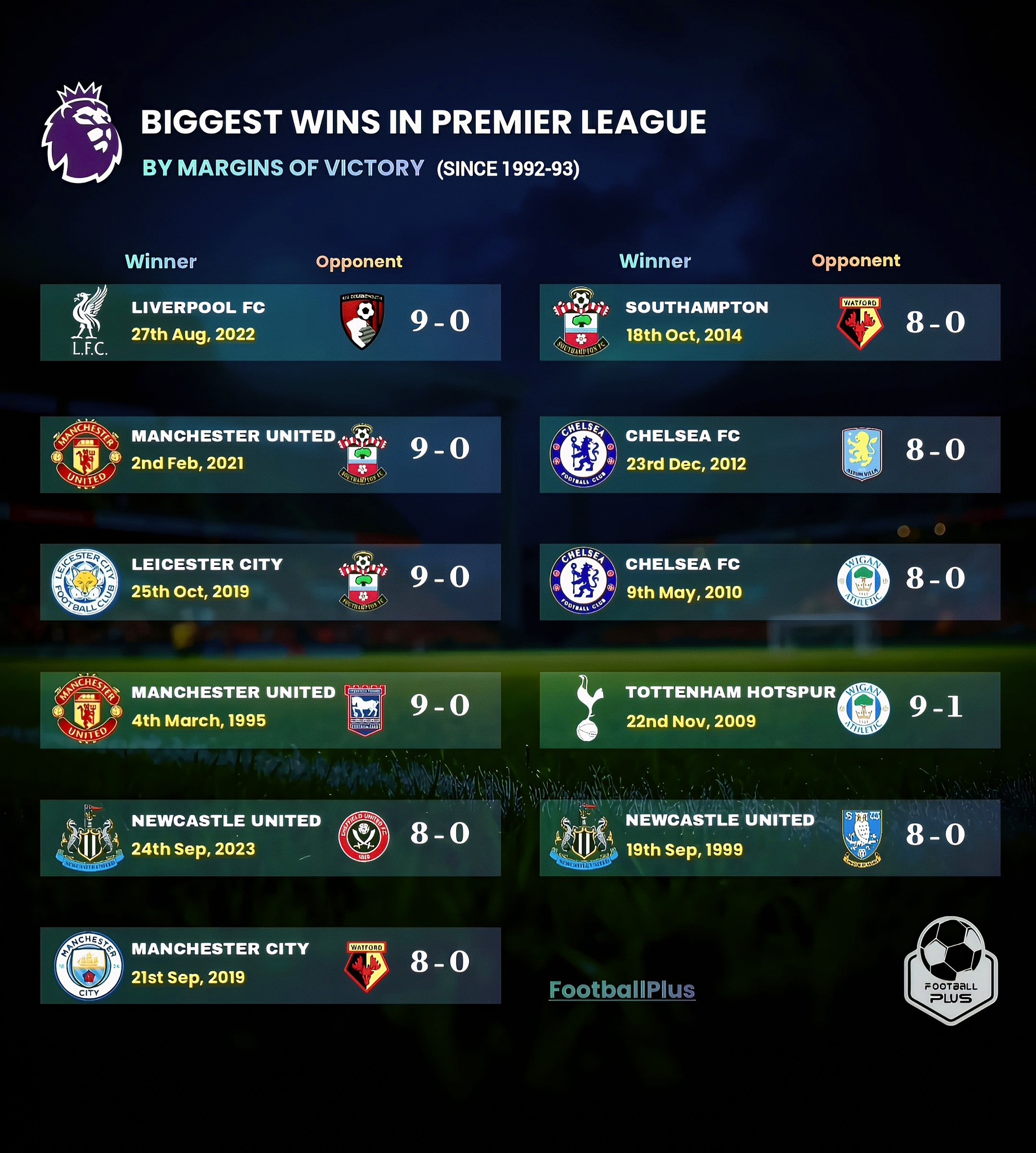 สถิติชนะขาดลอยมากสุดในพรีเมียร์ลีก!