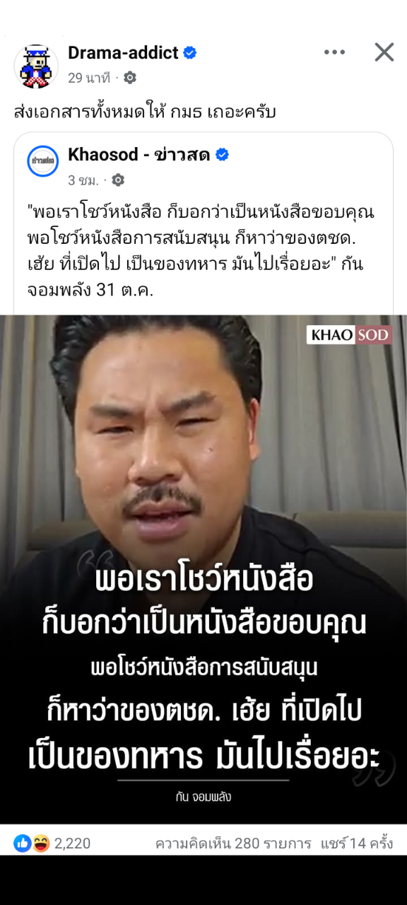 Top Comment [RE: พรี่กัน ครับ ส่งเอกสารทั้งหมดให้ กรรมมาธิการ เถอะครับ]