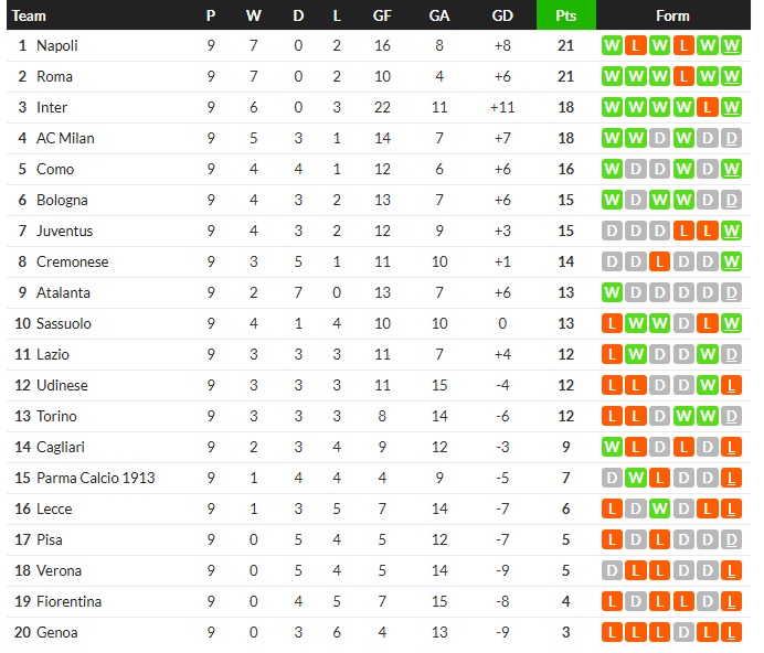 นาโปลี กำลังมองหาชัยชนะในบ้านเป็นนัดที่ 5 ติดต่อกันในทุกรายการ ซึ่งหากทำได้ พวกเขาจะนำโรม่าขึ้นไป 3 คะแนนบนตารางคะแนน ก่อนที่ทีม “จัลโลรอสซี่” จะลงสนามพบมิลานในวันอาทิตย์