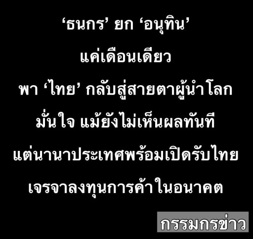 [RE: ‘ธนกร’ ยก ‘อนุทิน’ แค่เดือนเดียว พา ‘ไทย’ กลับสู่สายตาผู้นำโลกอีกครั้ง]